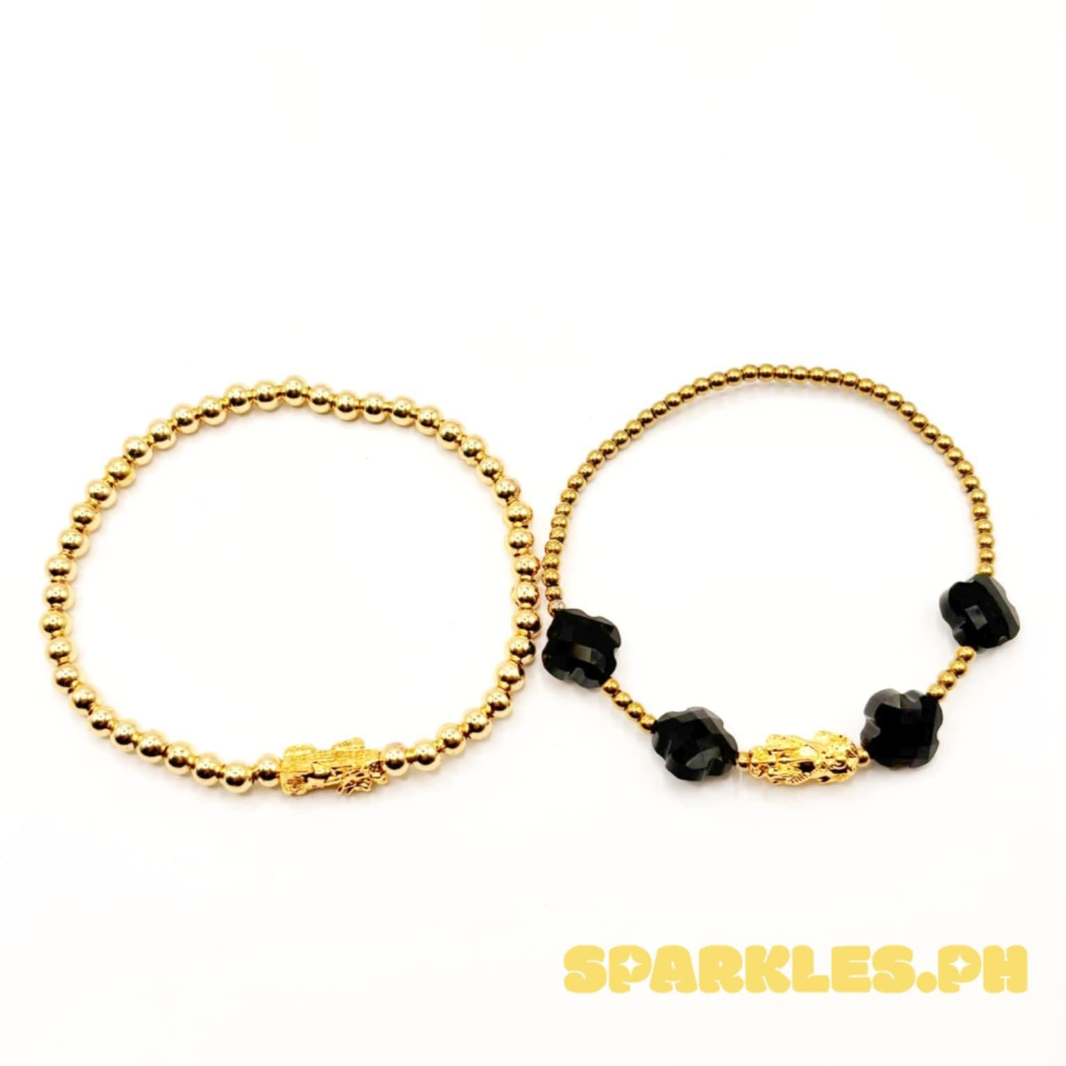 18k Saudi Gold B1T1 Bubble Piyao & Beaded Crystal Piyao Bracelet