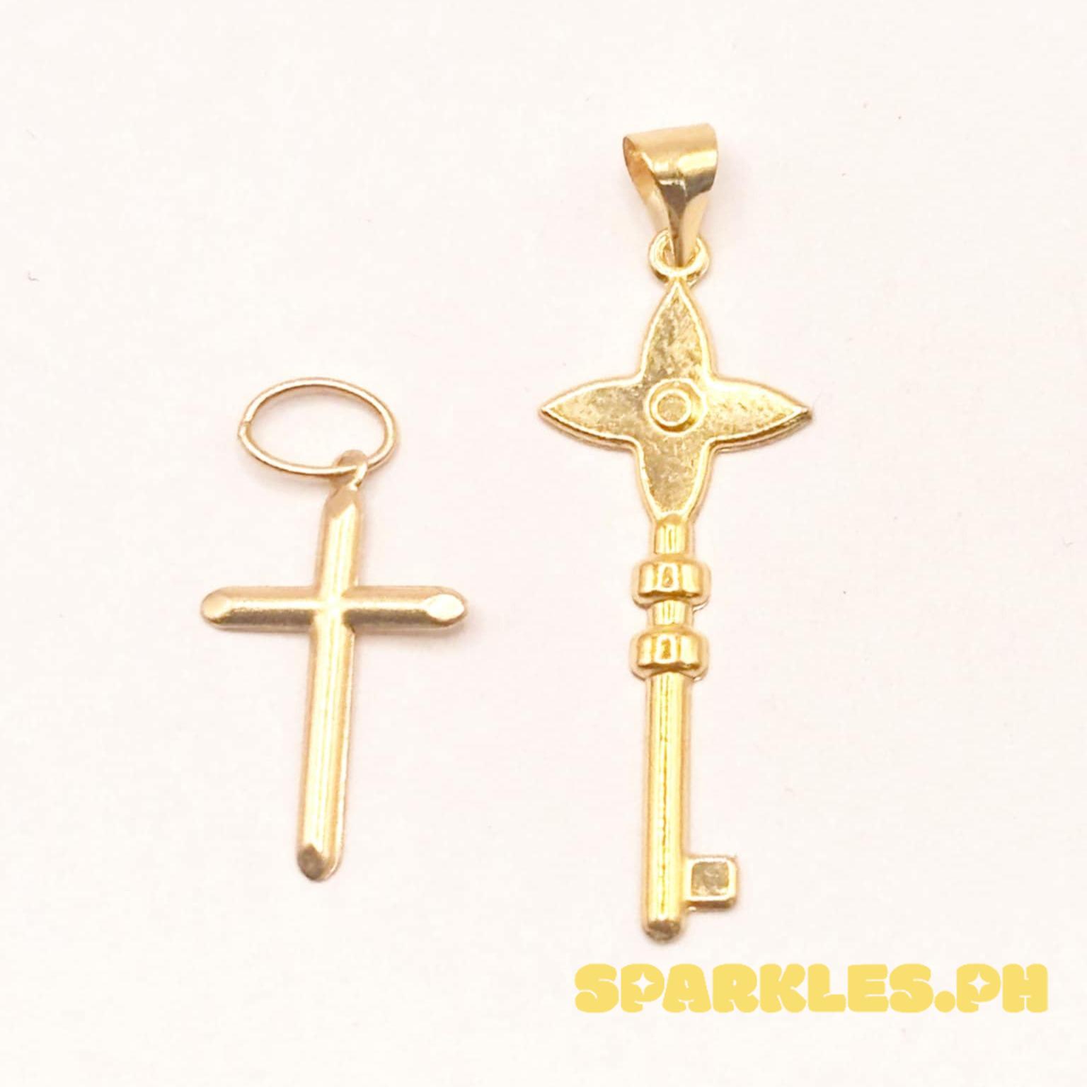 18k Saudi Gold Mini Plain Cross & Special Key Pendants