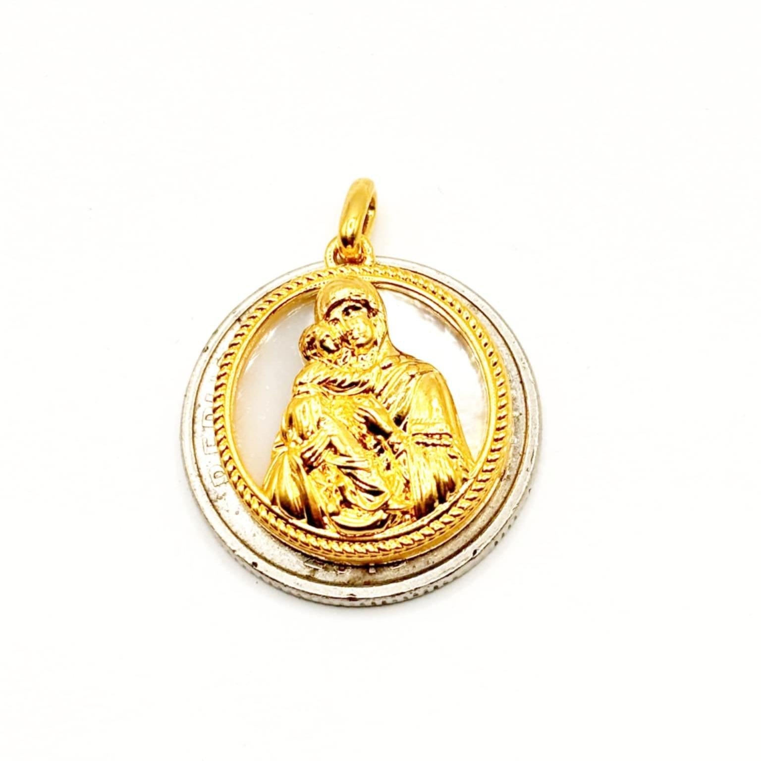 AMPAW/HOLLOW 18k Saudi Gold Round Mother & Child Pendant - SKU-QUZZN32G1