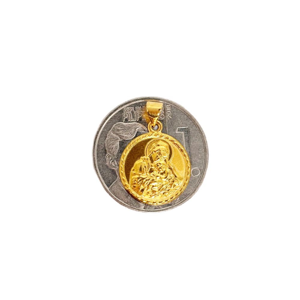 18k Saudi Gold Set 15mm Mary & Child + Foxtail Chain 18"