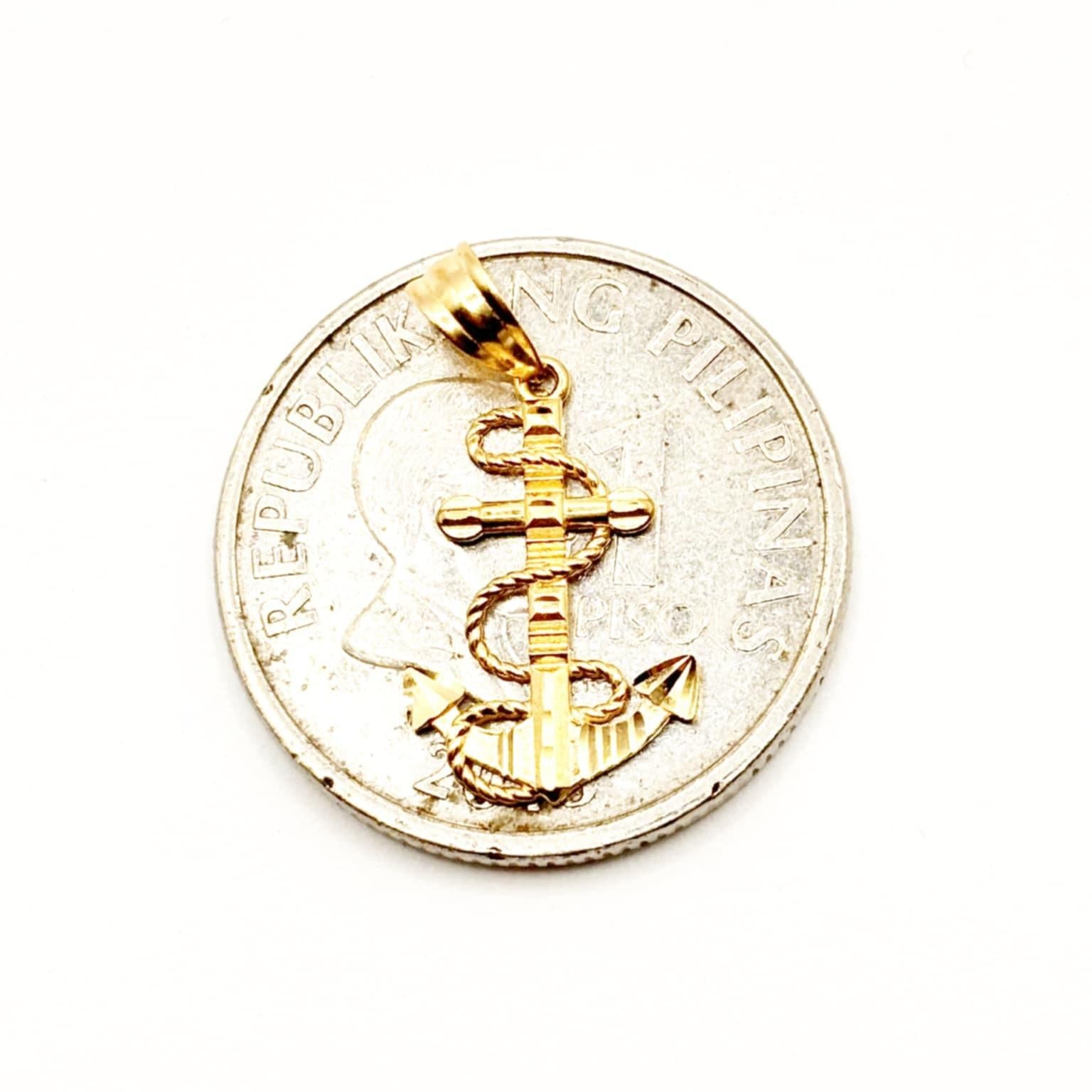 18k Saudi Gold Set Anchor Cross Pendant - SKU-QZGLNPRJ