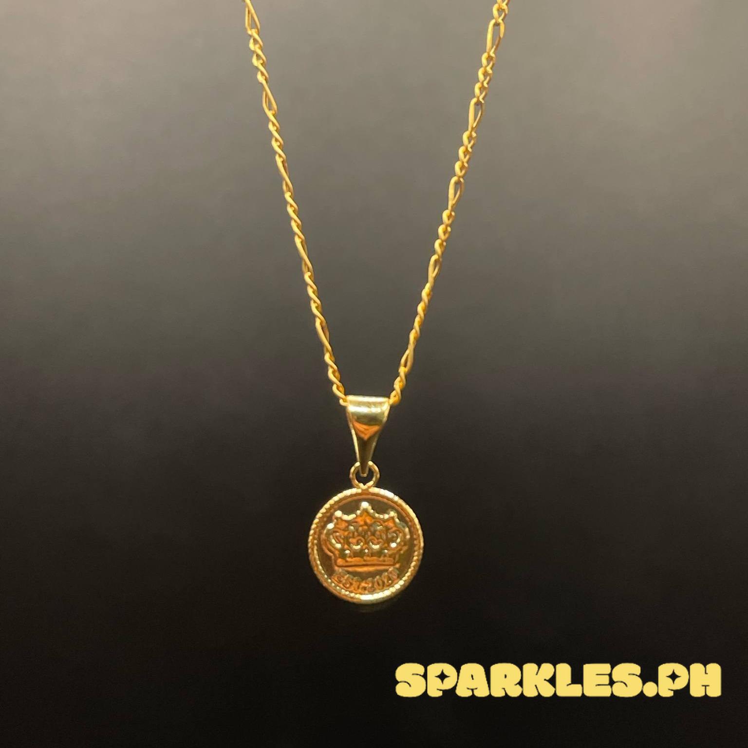 18k Saudi Gold SET Circle Crown + Figaru Chain 16"