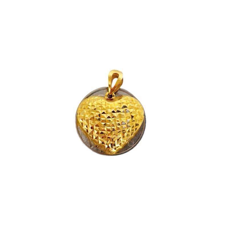 18k Saudi Gold Set Diacut Jumbo Heart + Diacut Circle Chain 18”