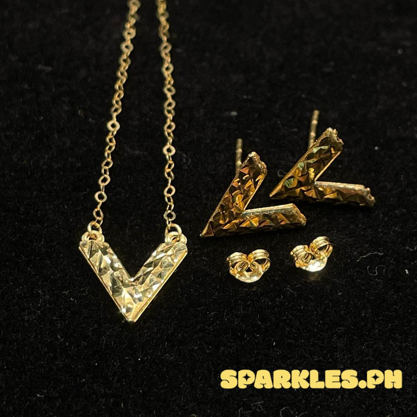 18k Saudi Gold SET Diacut V Style Necklace + Diacut V Earring Solid Pawnable