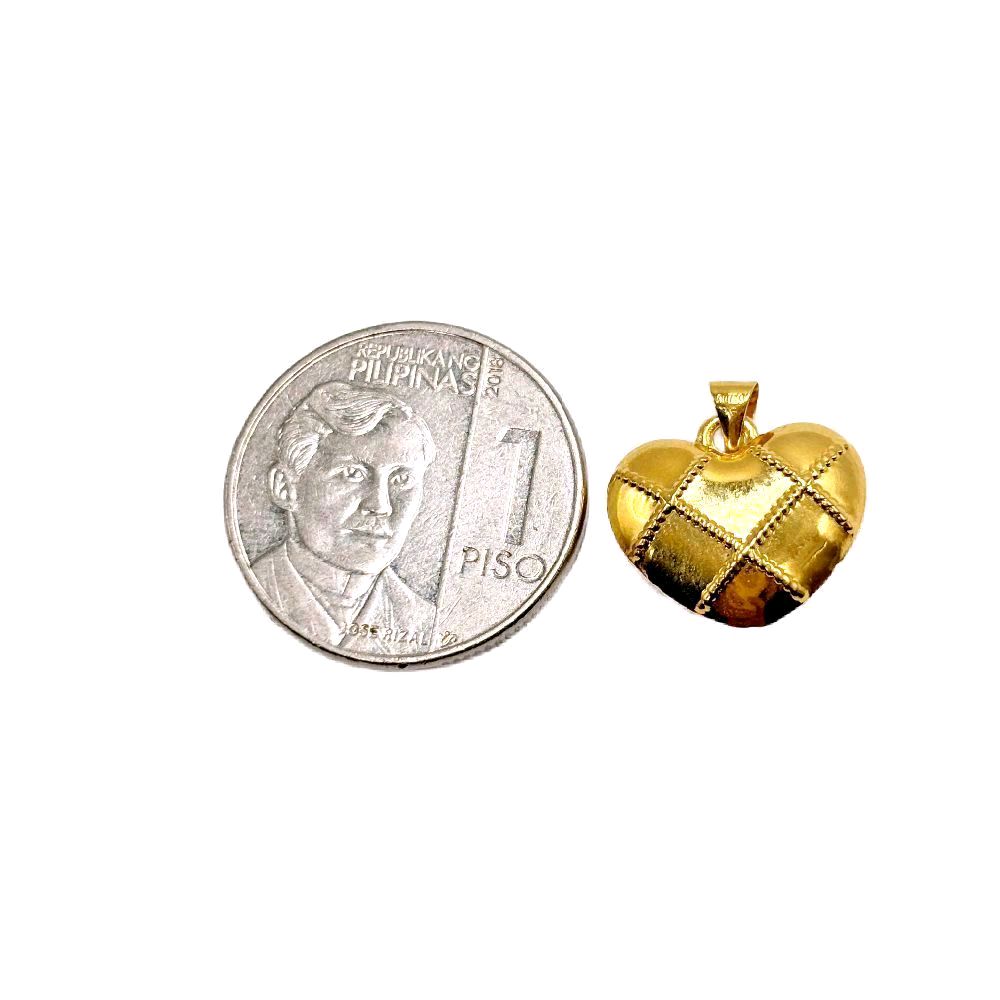 18k Saudi Gold Set Grid Heart + Foxtail Chain 18"