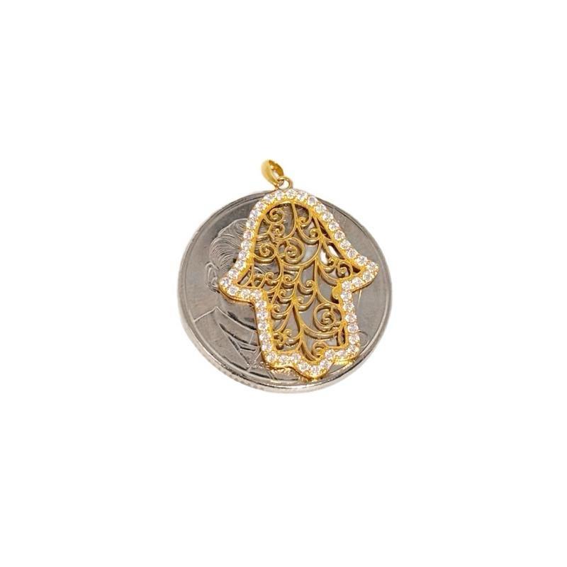 18k Saudi Gold Set Hamsa Moissanite + Diacut Circle Chain 18”