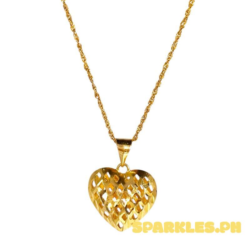 18k Saudi Gold Set Honey Heart + Rope Chain 18”