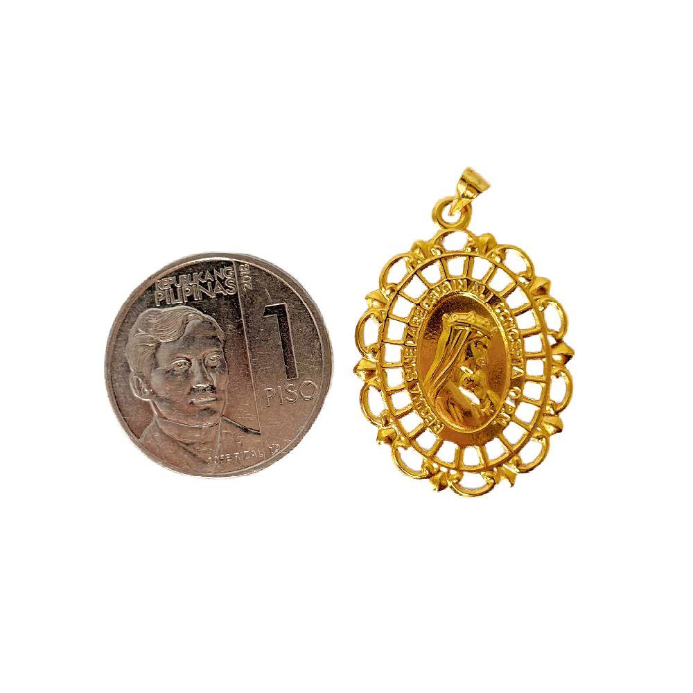 18k Saudi Gold Set Mirror Mary & Child + Foxtail Chain 18"