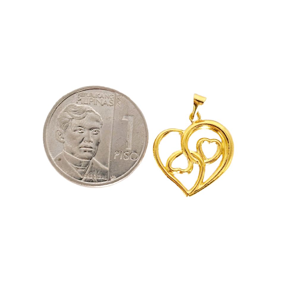 18k Saudi Gold Set Open Triple Heart + Rope Chain 22"