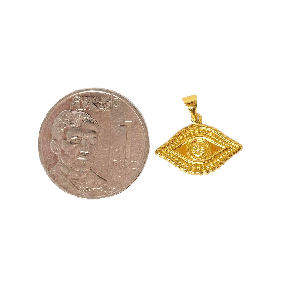 18k Saudi Gold Set Solid Evil Eye + Foxtail Chain 18"