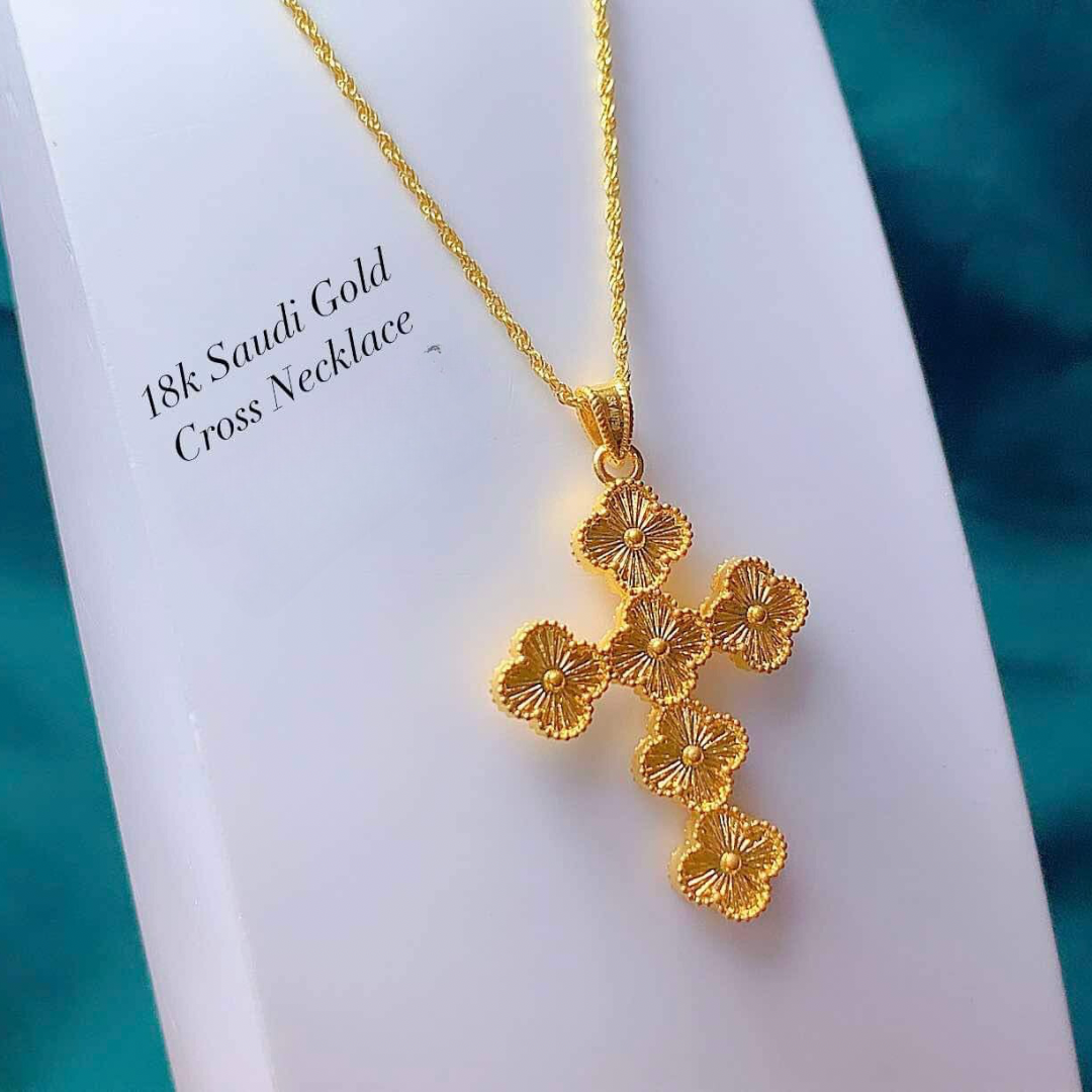 #3 Golden Cross Pendant Only Ampaw 18k Saudi Gold