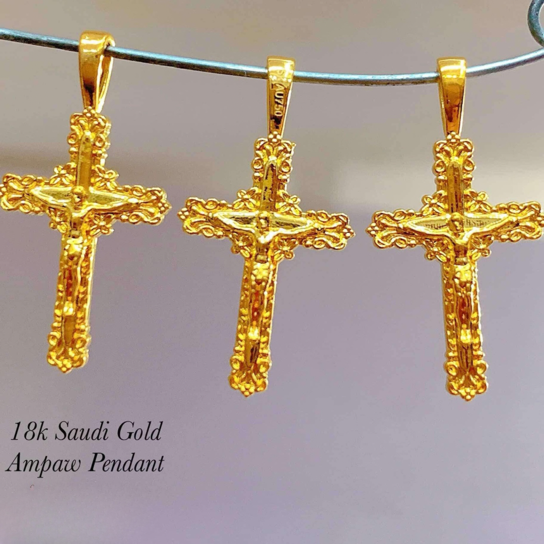 Golden Jesus in the Cross Pendant Ampaw 18k Saudi Gold