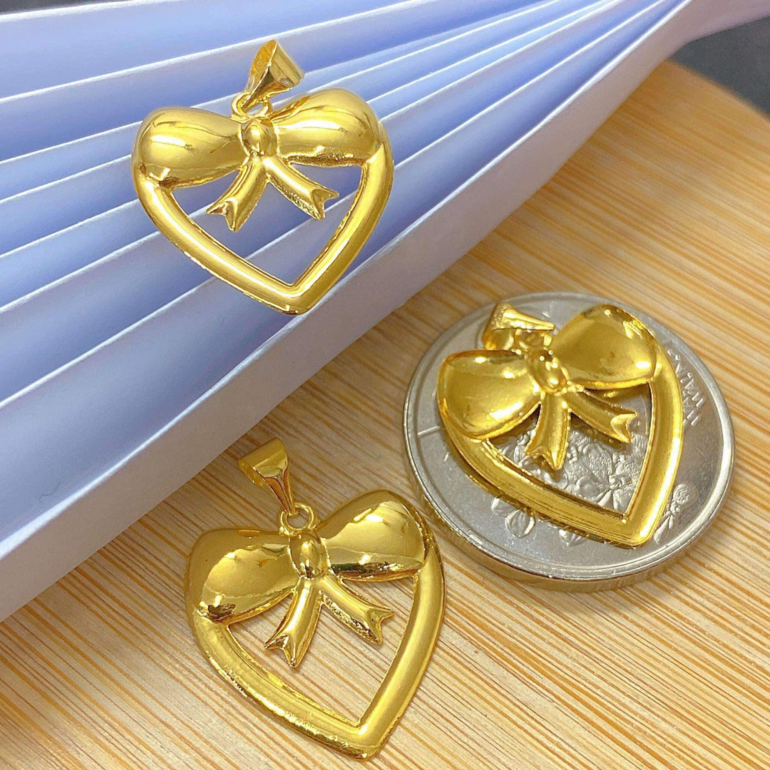 Plain Heart Ribbon Pendant 18k Saudi Gold