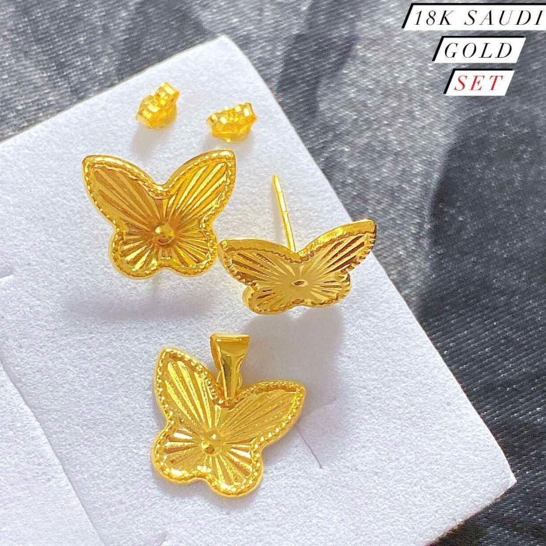 Sinag Butterfly Set Earrings & Pendant 18k Saudi Gold
